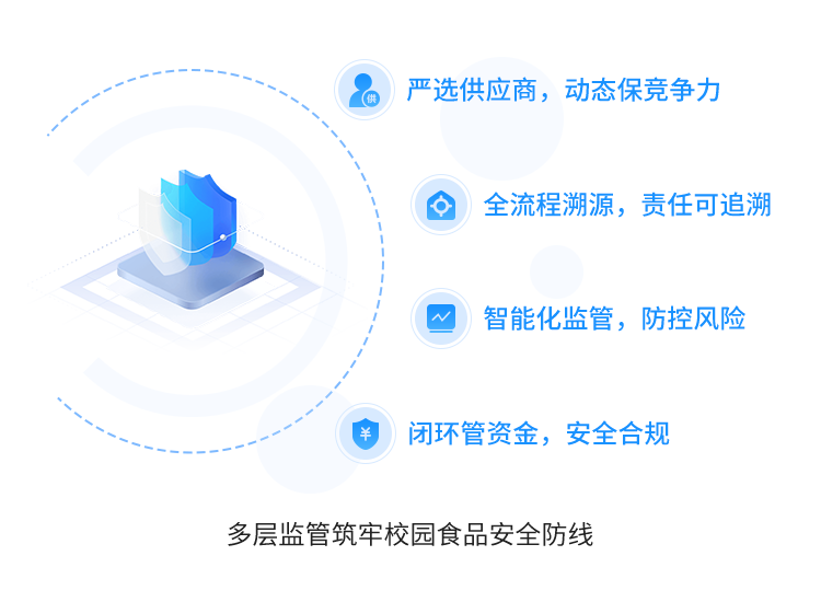 学校食材阳光采购平台国企供应链监管模式,彻底切断学校与供应商的直接联系,为学校食品安全筑牢防线。该企业负责人介绍,学校食材阳光采购平台以保障孩子食品安全、造福社会为宗旨,全面深入研究各环节流程,并融合软硬件与 AI技术,深度剖析供应链,实现从源头到终端的全链路监管,全方位保障食品安全。